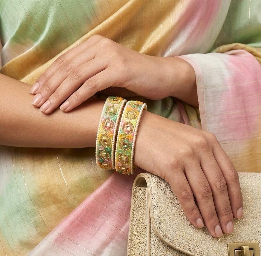 This designer bangle pair is a perfect choice for women who love elegant and trendy ethnic jewellery.