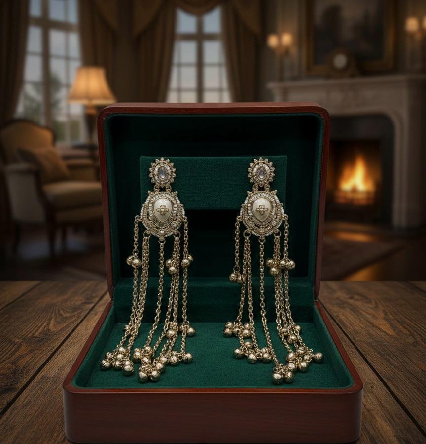 Add a touch of elegance to your look with these long Kashmira style earrings in beautiful two-tone shades. Designed with intricate detailing and a premium finish, these earrings are lightweight and comfortable for extended wear. Perfect for weddings, festivals, parties, or gifting, they bring a classy and stylish flair to any outfit.