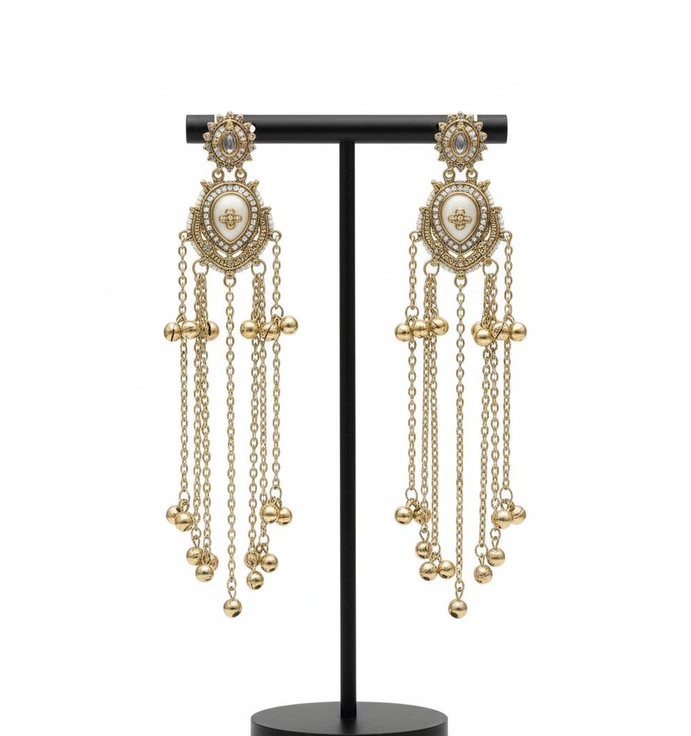 Stylish long Kashmira style earrings in two-tone shades.