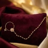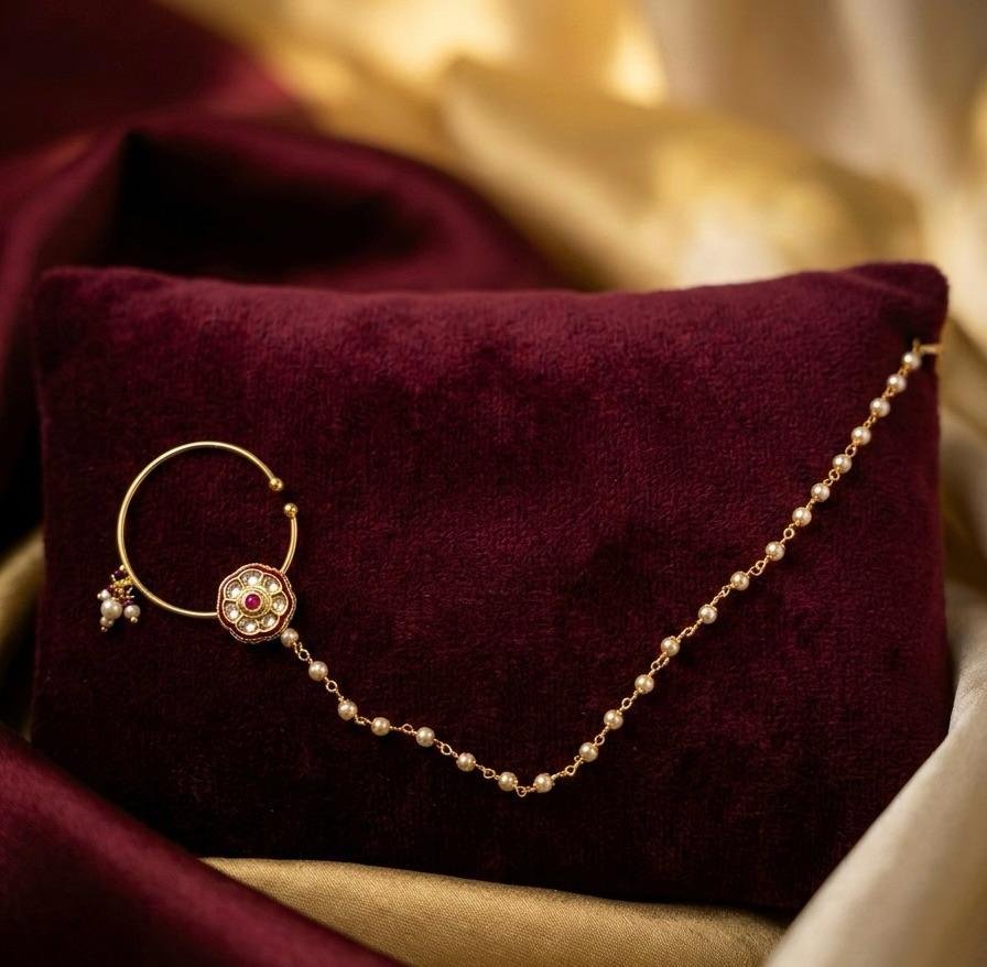 Add a touch of royal elegance to your look with this beautiful Bridal Nath with Chain. Designed with sparkling Ad kundan  work and finished in rich gold polish ✨, this piece reflects timeless traditional charm.