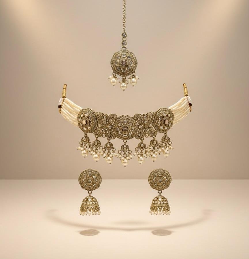 Be the first to review “Pearl Crest Reverse AD Antique Choker Set”