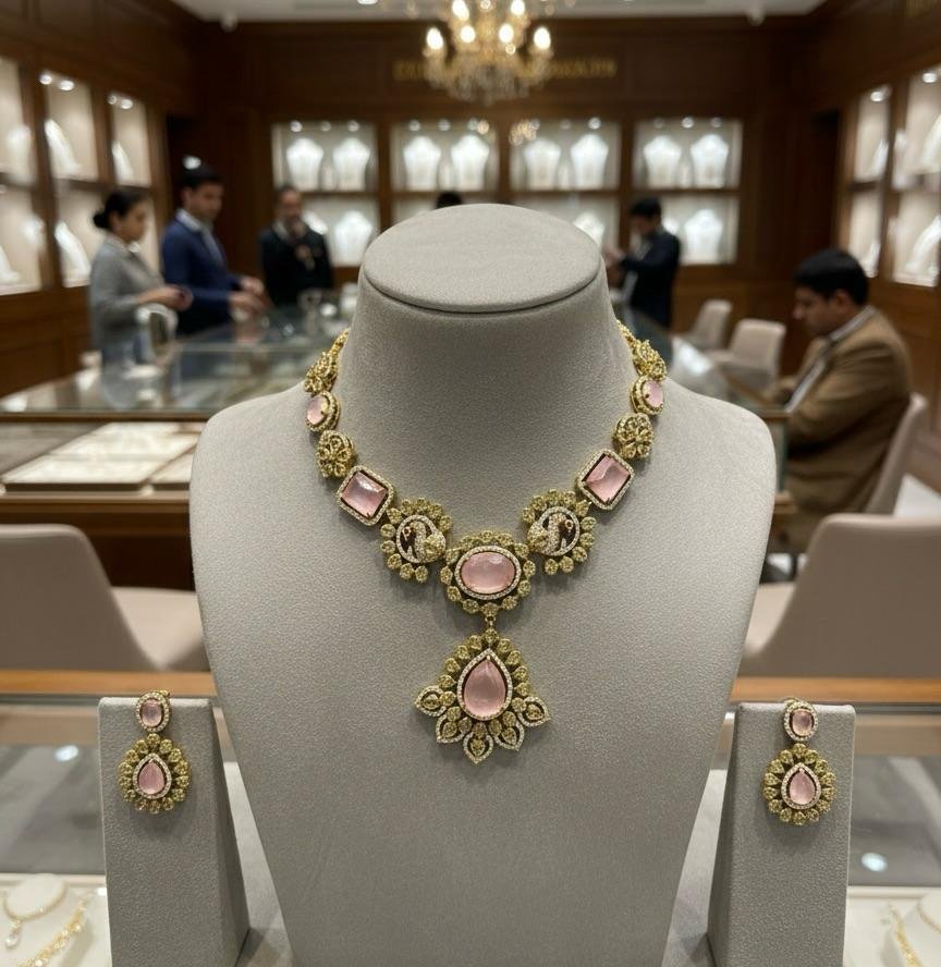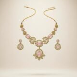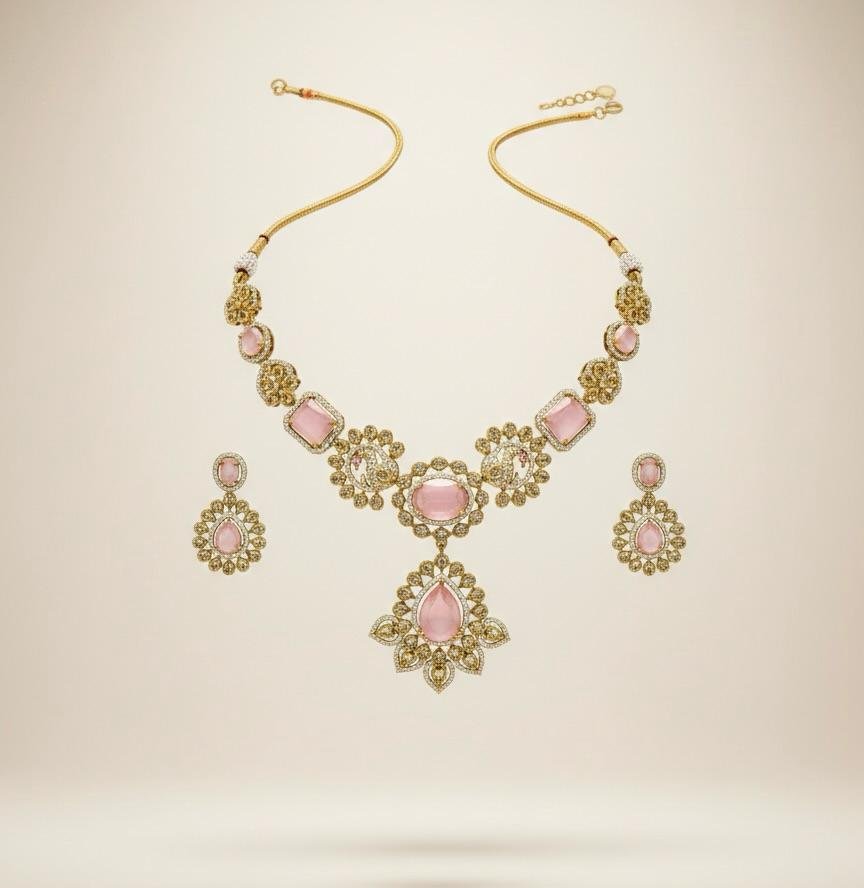Be the first to review “Pink Blossom Antique American Diamond Necklace Set”