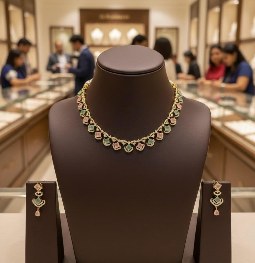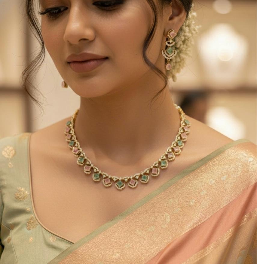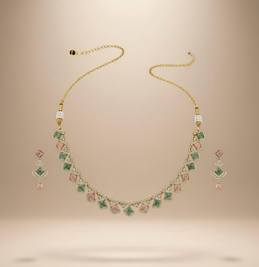 Be the first to review “Pink Mint Grace American Diamond Necklace Set”