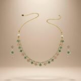 Add a refreshing charm to your jewellery collection with the Pink Mint Grace American Diamond Necklace Set. Designed with sparkling American diamond stones, this set features a rich antique gold polish that enhances its traditional appeal. The soft pink and mint colour combination brings a modern, graceful touch, making it ideal for festive occasions, parties, and special gatherings.