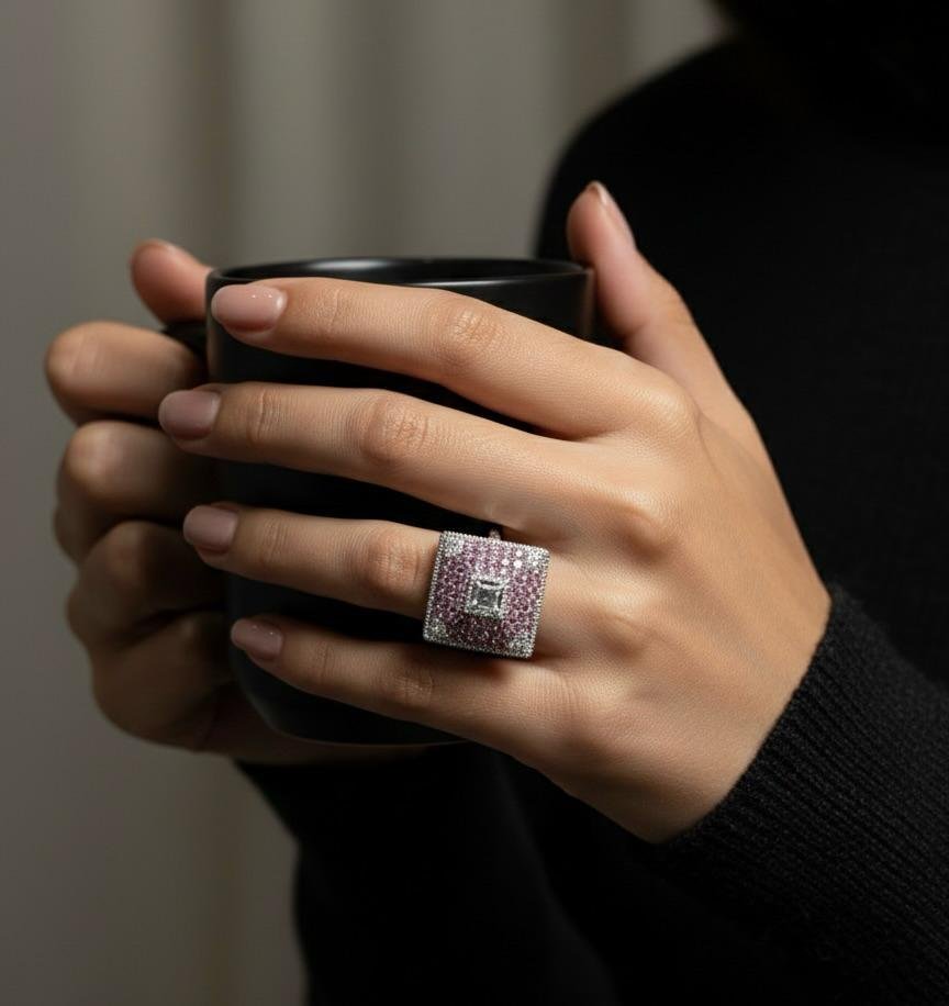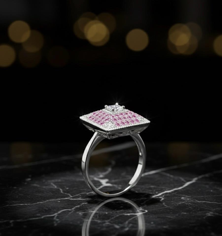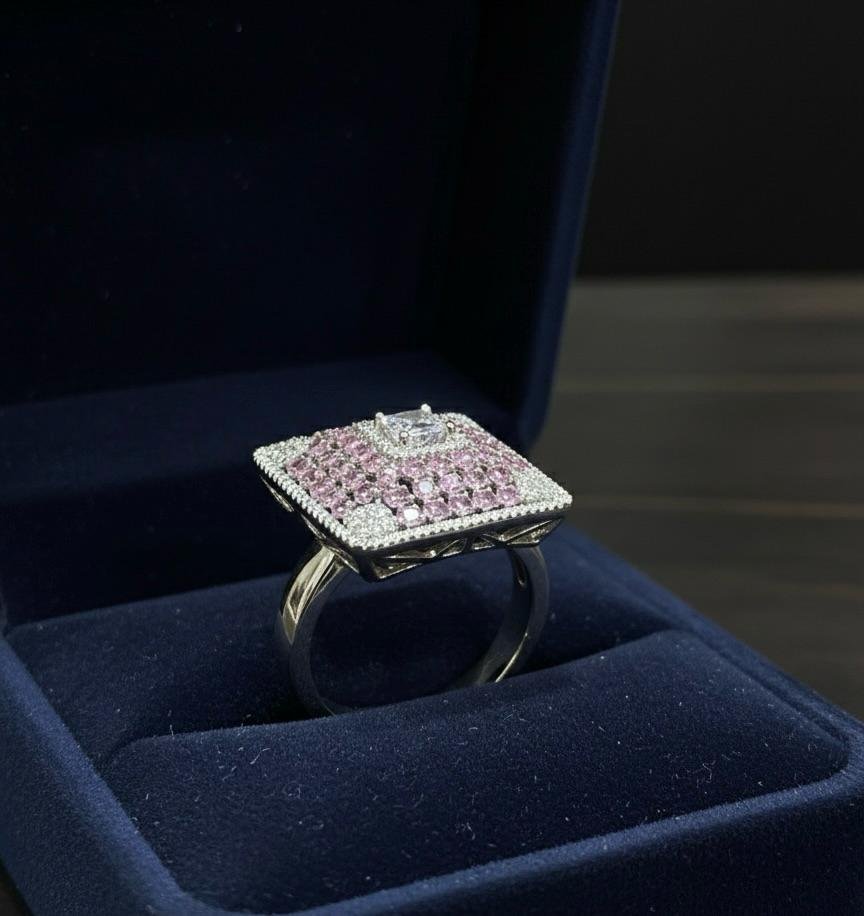 Enhance your style with the soft elegance of the Rose Blush American Diamond Finger Ring. Crafted with sparkling American diamond stones and refined pink stone detailing, this ring features a sleek silver polish that adds a modern and classy finish.