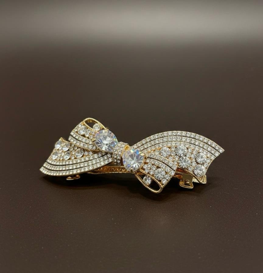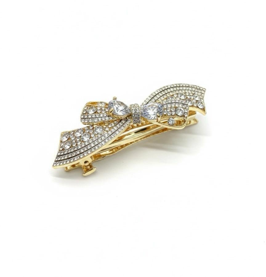 Add a touch of luxury to your hairstyle with the Royal AD Gold Imported Backclip. Crafted with premium imported quality, this elegant backclip is adorned with shimmering golden American diamond (AD) stone work and finished with smooth gold polish for a rich, classy look.
