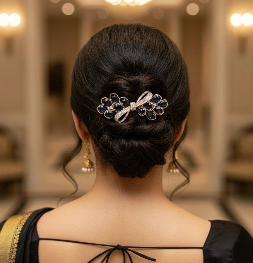 Lightweight and comfortable, this backclip offers secure wear while elevating both ethnic and fusion hairstyles. Ideal for weddings, festivals, parties, and special occasions.