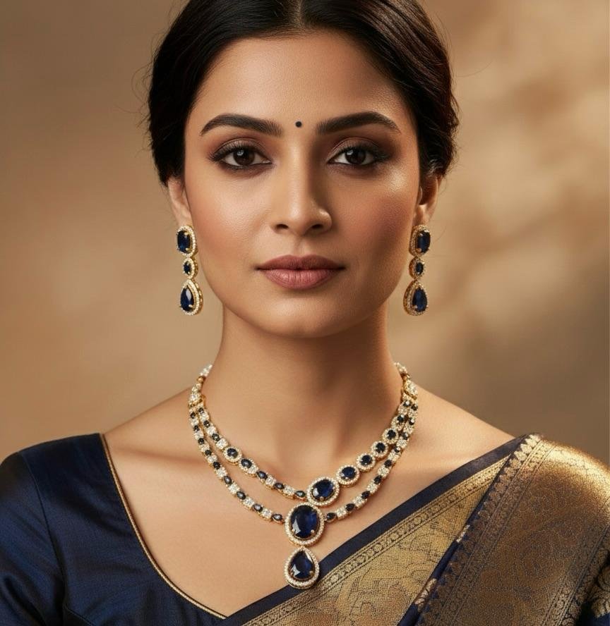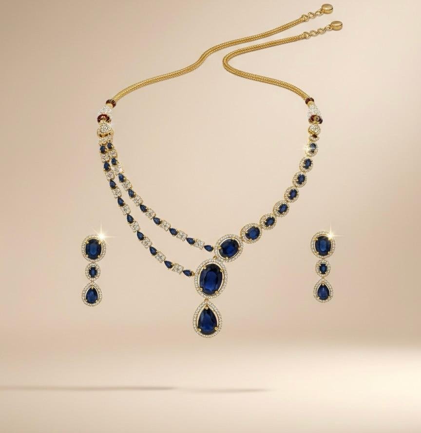 Be the first to review “Royal Blue Aura Antique American Diamond Necklace Set”