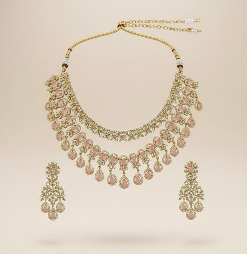 Be the first to review “Royal Blush Antique American Diamond Necklace Set”