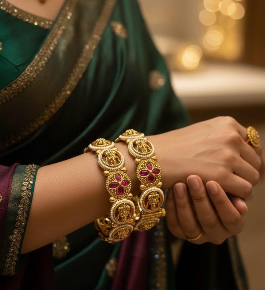 Designed with an adjustable size, these bangles ensure comfort along with elegance. Available in sizes 24, 26, and 28, they are perfect for weddings, festive occasions, cultural events, and traditional functions. Pair them with sarees, lehengas, or ethnic outfits for a graceful and regal look.