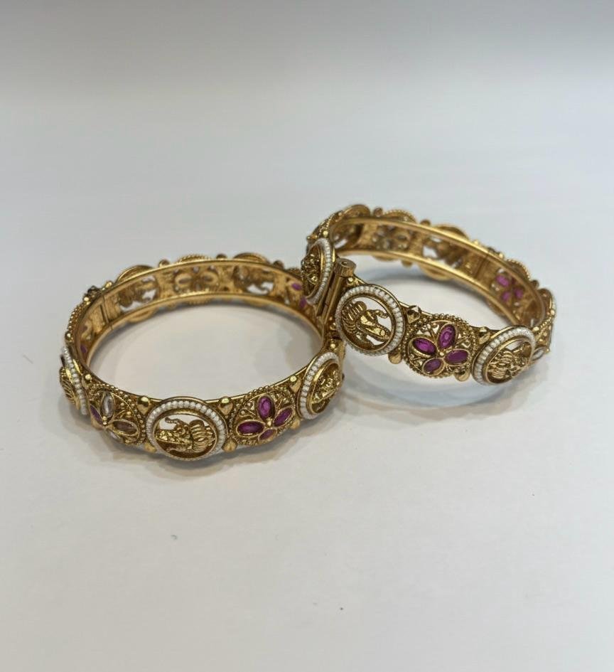 Be the first to review “Ruby Meena Heritage Gold Bangles (Pair)”