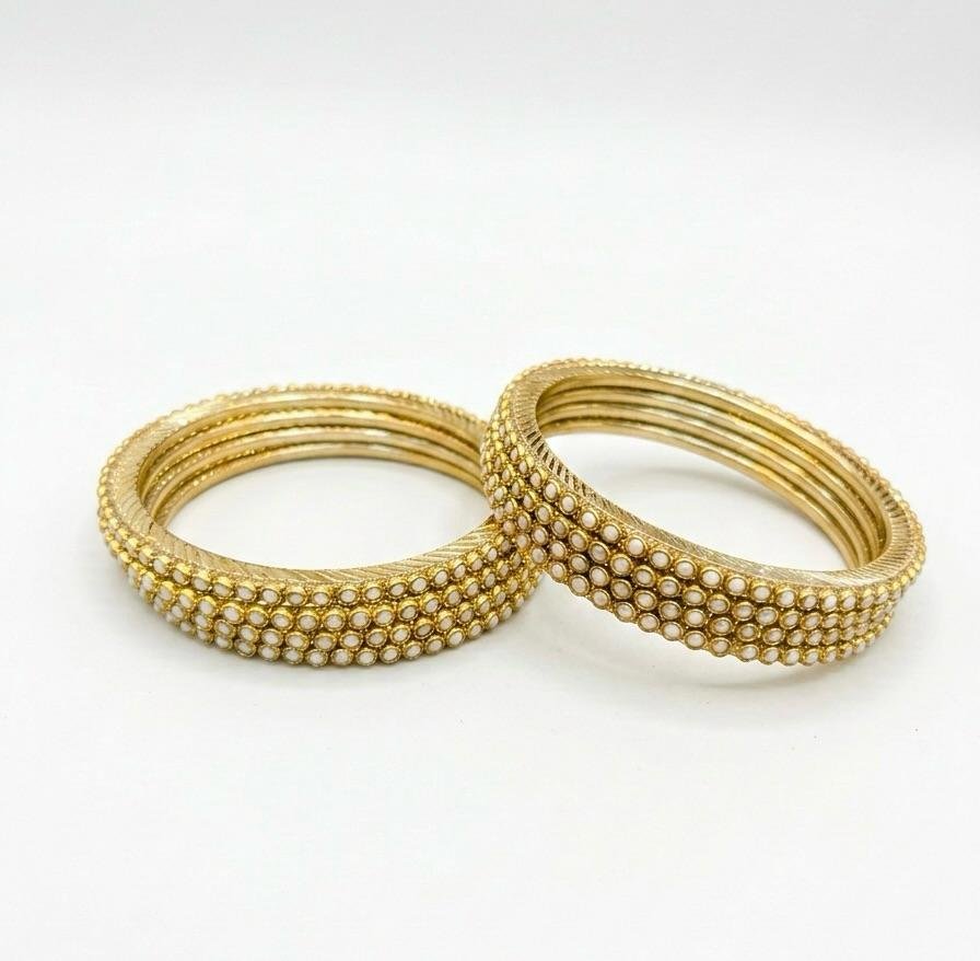 Add a royal touch to your ethnic look with this elegant 8-Piece Brass Metal Bangle Set. Beautifully designed with sparkling Kundan stone work and finished in a rich golden colour ✨, these bangles bring timeless charm and sophistication.