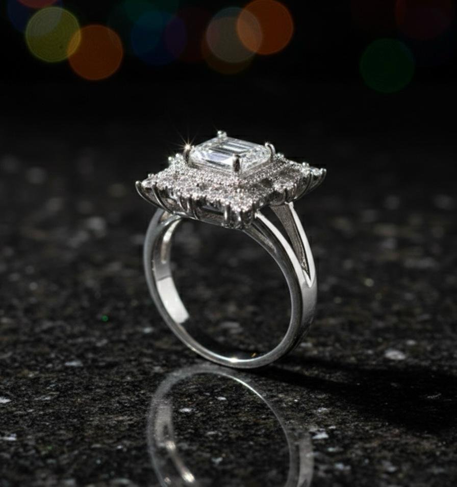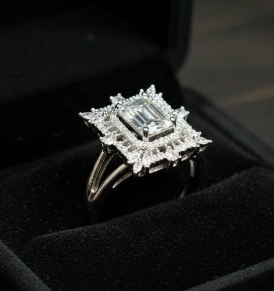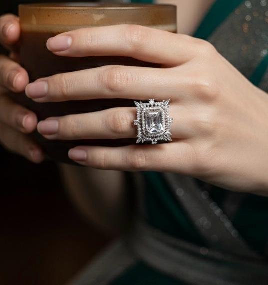 Classic American diamond finger ring with smooth silver polish, neat silver stone work, and adjustable size for a comfortable fit.