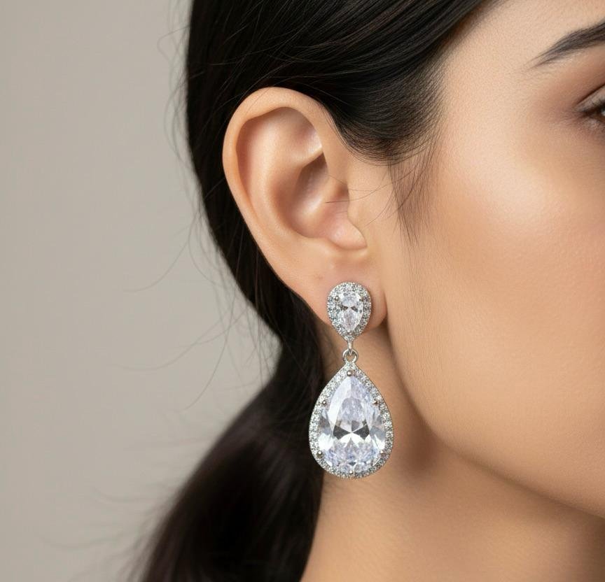 Add a touch of sparkle to your look with these elegant American Diamond Small Hanging Earrings crafted with premium silver plating. Designed with shimmering AD stones, these earrings offer a graceful shine that enhances both traditional and western outfits.