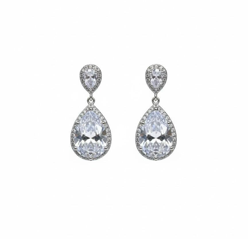 Silver plated American diamond small hanging earrings with elegant sparkle. Perfect for daily and party wear.