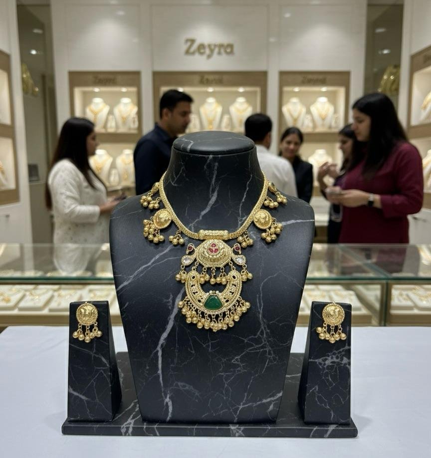 Designed for both elegance and comfort, this heritage jewellery set offers a secure fit and a luxurious look, making it a perfect choice for special occasions or as a thoughtful gift.