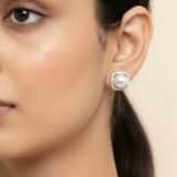 White pearl American Diamond silver plated stud earrings with elegant sparkle. Ideal for daily and festive wear.