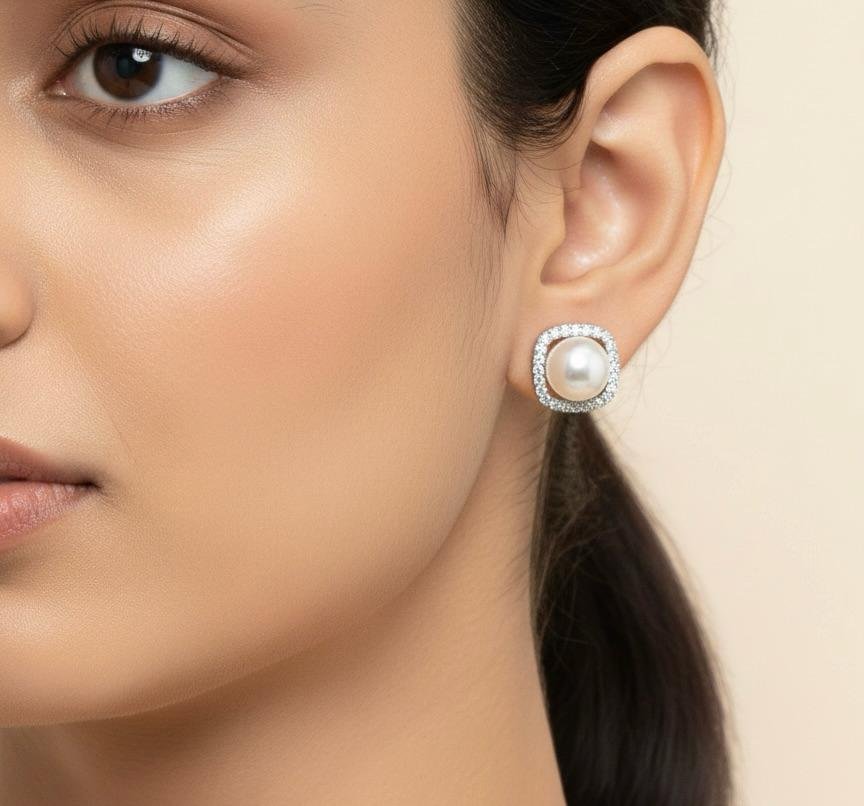 Be the first to review “White Pearl American Diamond Silver Plated Stud Earrings – Classic AD Tops”